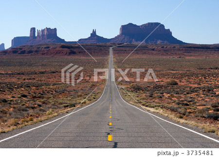 アメリカの風景 モニュメントバレー真っ直ぐな道(映画フォレスト・ガンプ撮影地点)