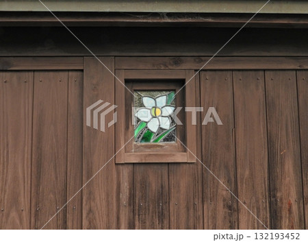 板塀の飾り付けのガラス細工の絵