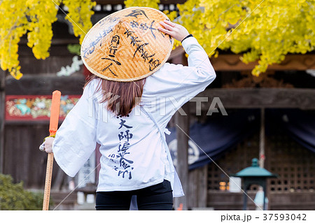 お遍路 女性 お遍路さん 巡礼者 菅笠 輪袈裟