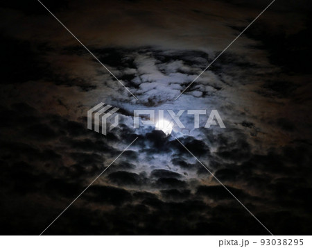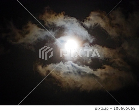 雲に隠れた満月、ぼやけた満月、オボロ月夜