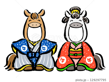 顔はめ年賀状素材2人用 午年の訪れを祝う干支の馬(午)の男女