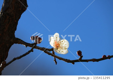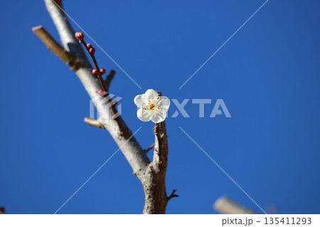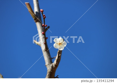 青空に映える白梅 趣のある一輪 冬