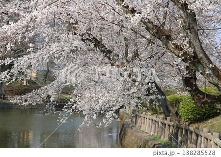 水面に咲く満開の桜 春の公園