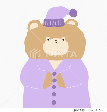 布団で眠るかわいいねこのキャラクターの手書き風イラスト