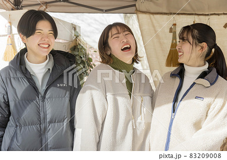 マルシェのお店の前で会話をする若い女性たち クラフトフェア
