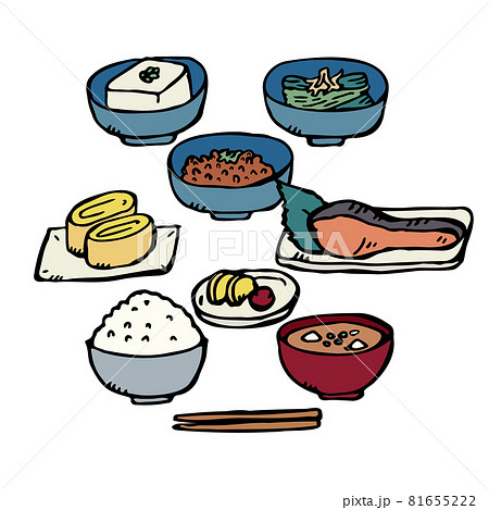 【手描き万年筆線画】Food_ごはん味噌汁おかず5品