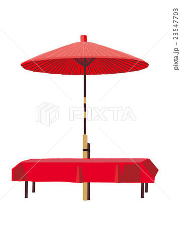 甘味屋の店先の野点傘 大きな赤い和傘