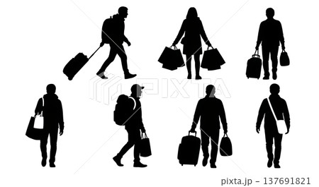 Black Solid Carrying Bags Silhouettes Set of Six on White Background