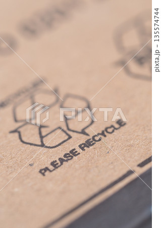 Recycle symbol on cardboard packaging in close view