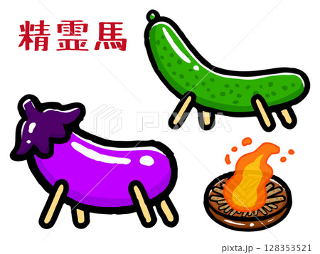 精霊馬と精霊牛の落書き風イラスト素材セット