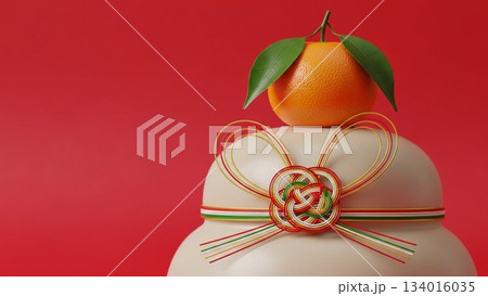 赤い背景に鏡餅を配置したシンプルなお正月イメージ