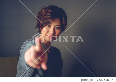 指さす女性