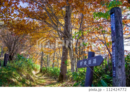 旧野麦街道の鮮やかな紅葉【県境・お助け小屋周辺】