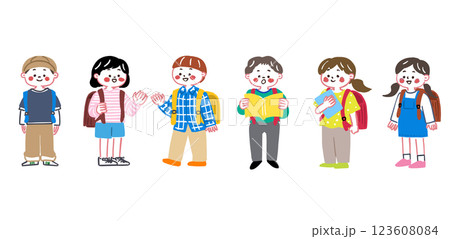立っている小学生達のかわいいイラスト