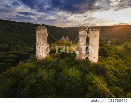 View of the ruins of the ancient Chervonohorod castle, near the town of Zalishchyky, Ternopil province, Ukraine. High quality photo