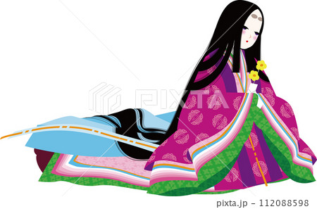 平安絵巻風の十二単衣の女性のイメージイラスト