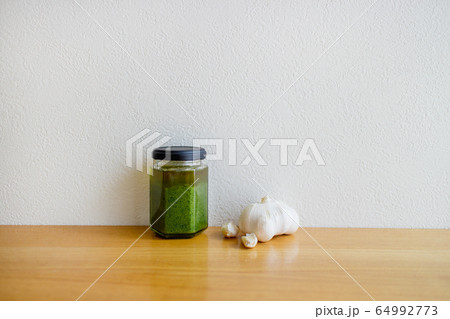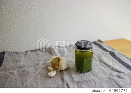 手作りバジルソースとにんにくイメージ