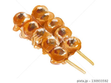 とろっとした蜜のかかったみたらし団子の手描き水彩イラスト