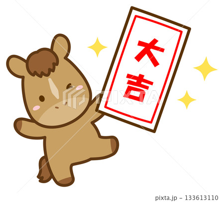 大吉のおみくじとかわいい馬 正月や初詣のイラスト