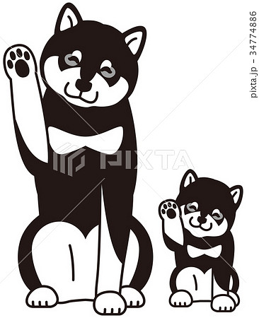お座りして手を振るビション・フリーゼの子犬 主線あり