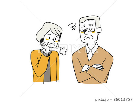 がっかりしている高齢の夫婦 コミカルな手書きの人物イラスト ベクター線画にシンプルな色つけ 白バック