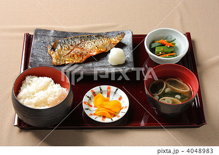 朝食イメージ 梅干しをのせたご飯とお味噌汁とおかず
