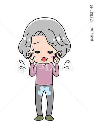 お漏らし シニア女性 高齢者 漏らす おしっこ イラスト