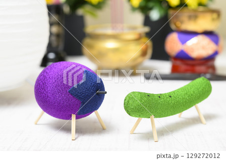 精霊馬(キュウリをお仏壇へ ナスを外へ向ける飾り方)