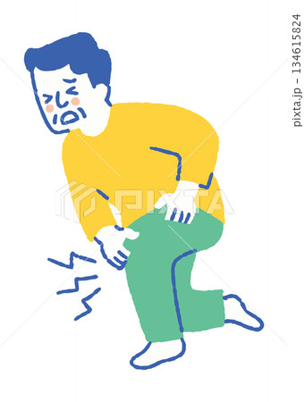 坐骨神経痛で足先まで痛みだした高齢者男性のイラスト