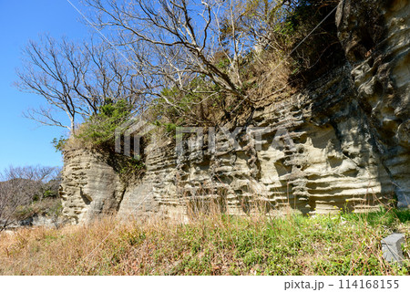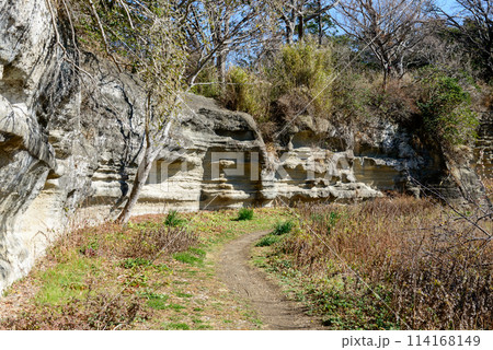 地層が見える断崖、お猿畠の大切岸、神奈川県鎌倉市、逗子市