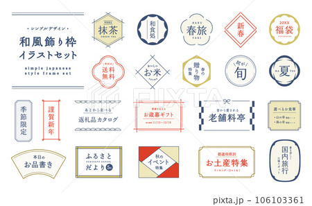 シンプルな和風フレームのセット 和 日本 飾り 飾り枠 飾り罫 装飾 あしらい デザイン タイトル