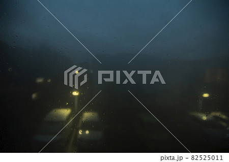 強い雨の夜に部屋から窓の外を眺める