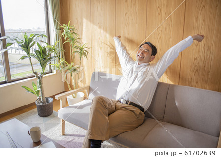 リビングでのんびりくつろぐミドル〜シニア男性