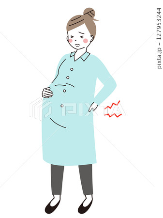 腰痛で辛そうな表情の妊婦さんのイラスト