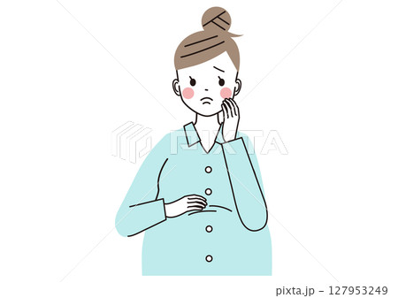 不安そうな表情の妊婦さんのイラスト(上半身)