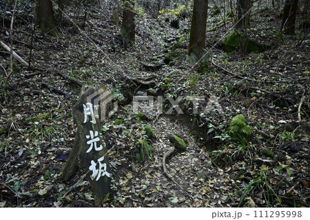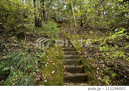 秩父札所32番法性寺の奥之院への参道途中の岩窟十三仏への石段