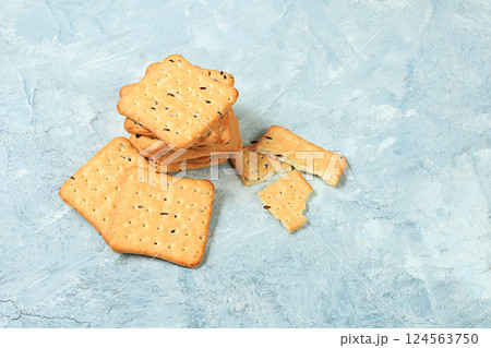 Dry French cracker with sesame seeds on concrete background.Homemade gluten free chocolate chip and nut cookies,modern bakery concept. Healthy breakfast with ingredients, top view, selective focus,