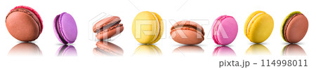 Colorful macarons arranged on a vibrant artistic background showcasing culinary delight