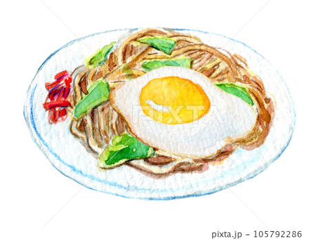 焼きそば 水彩イラスト