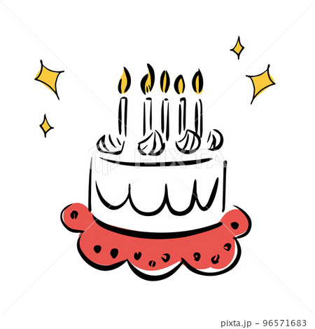 バースデーケーキイラスト_お誕生日のあしらい_赤アンド黄色