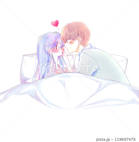 女性に迫る男性 パジャマ ベッド 窓 シルエット
