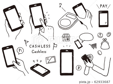 スマートフォンで決済する キャッシュレス決済 イラストセット