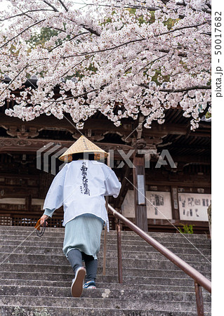 四国霊場第67番札所「大興寺」仁王門前のお遍路さんと桜