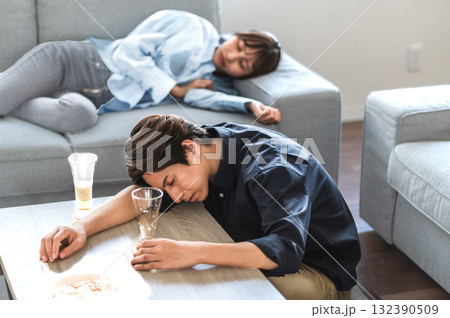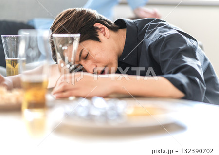 宴会で酔い潰れた人のイメージ