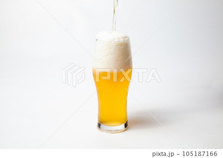 白背景でグラスに注がれたキンキンの生ビール