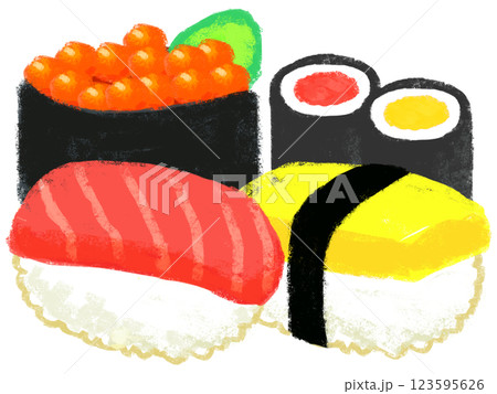 にぎり寿司のセット シンプルイラスト クレヨンタッチ