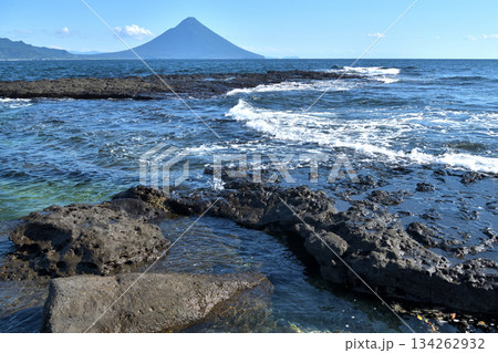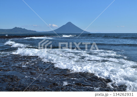 【長崎鼻より開聞岳】 鹿児島県指宿市山川岡児ケ水字長崎