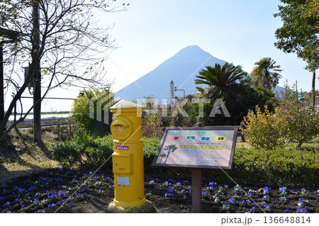 開聞岳と黄色いポスト