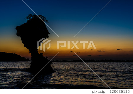 りんご岩(傘岩)の日没後夕焼け 柿泊海岸 ながさきサンセットロード パノラマ 【長崎市】