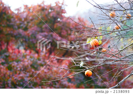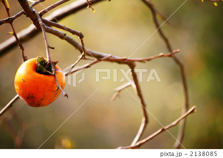 秋の陽に映える柿の実 晩秋の風景 晩秋イメージ